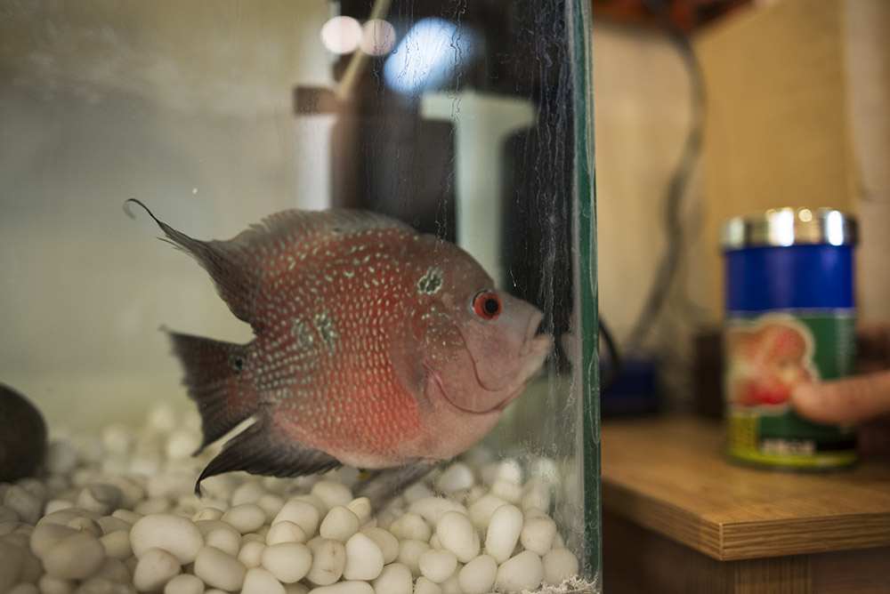 as of the day of my visit to their home, they only had a quite large fish to feed,