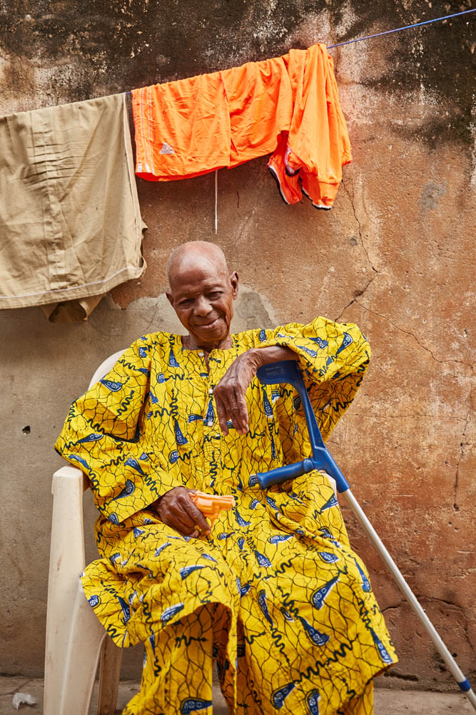 during the photo shoot he nearly dozed off, with his extended family assembled around him in the courtyard. the man´s brother watched from a tiny window above and we later climbed the winding stairs to his room. there I saw the only newspaper during a whole month spent in benin. I had wanted to pick up a copy from time to time, hoping for engaging headlines like the "killer camel castrated" story I had enjoyed reading in the ahmedabad times the year before.
